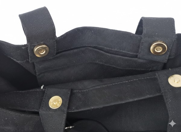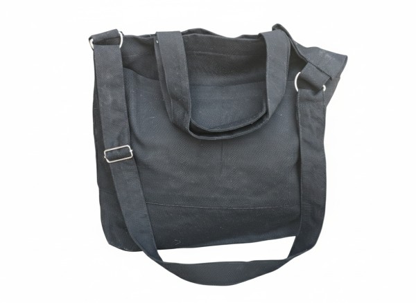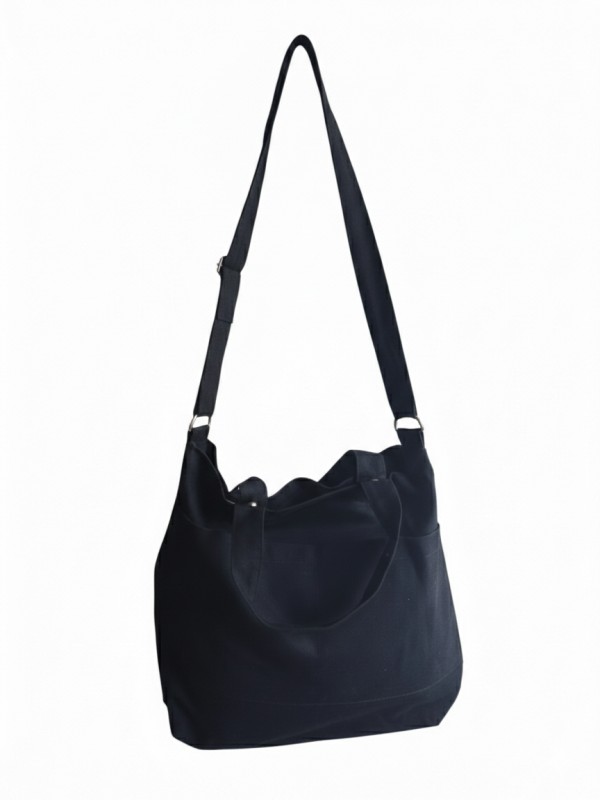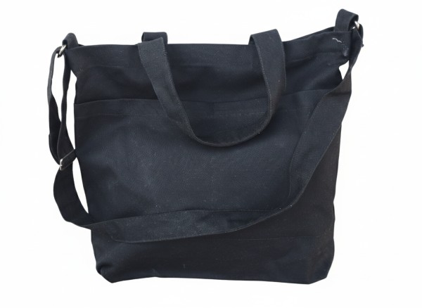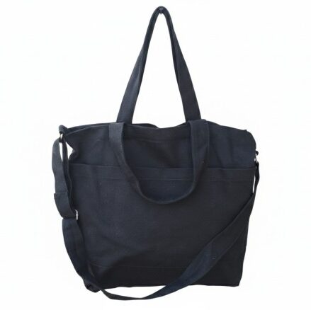 This black canvas bag with pockets is designed for those who need both function and style. Its roomy interior fits books, tablets, and daily essentials while keeping everything organized. With a 17-inch width, 14-inch height, and 4-inch gusset, it provides plenty of space without feeling bulky. The sturdy canvas holds up to daily wear, and the structured shape makes it easy to carry by hand or over the shoulder. Perfect for commuting, errands, or casual outings, this bag combines convenience with a sleek, timeless look.